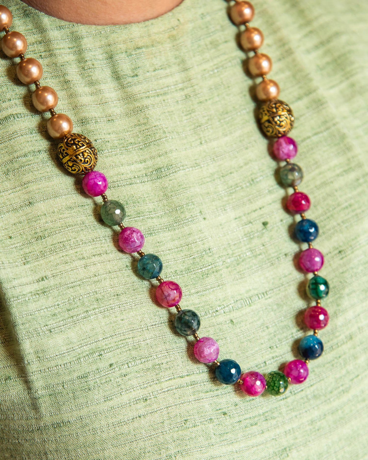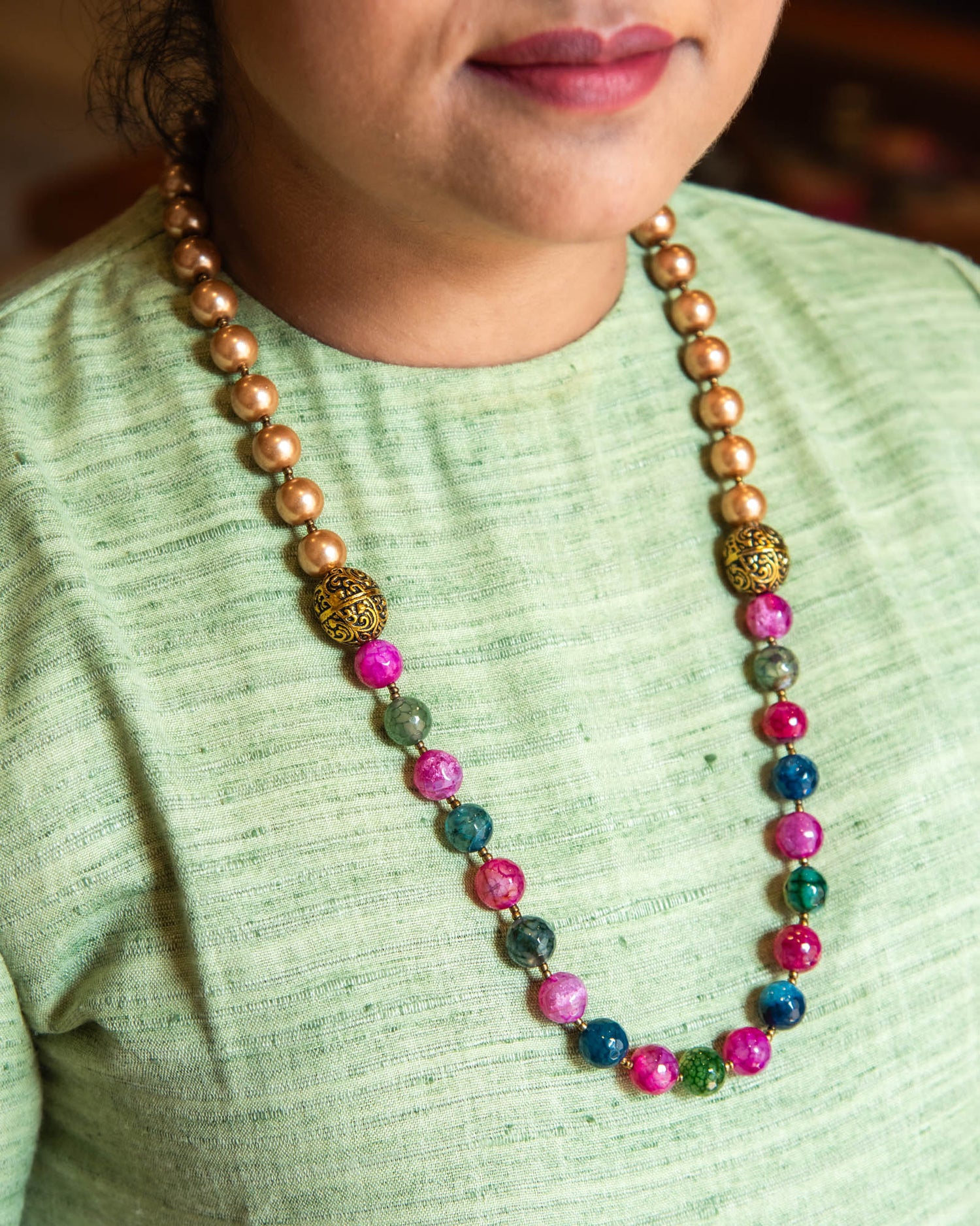 A single string of Baroque shell pearls interspersed with semi-precious serrated Agate beads. Sophistication at its finest!