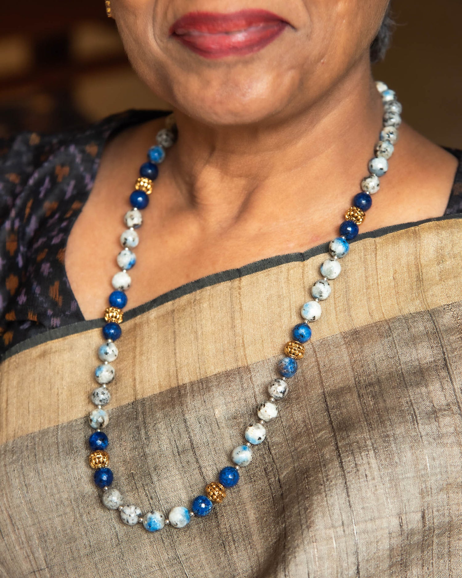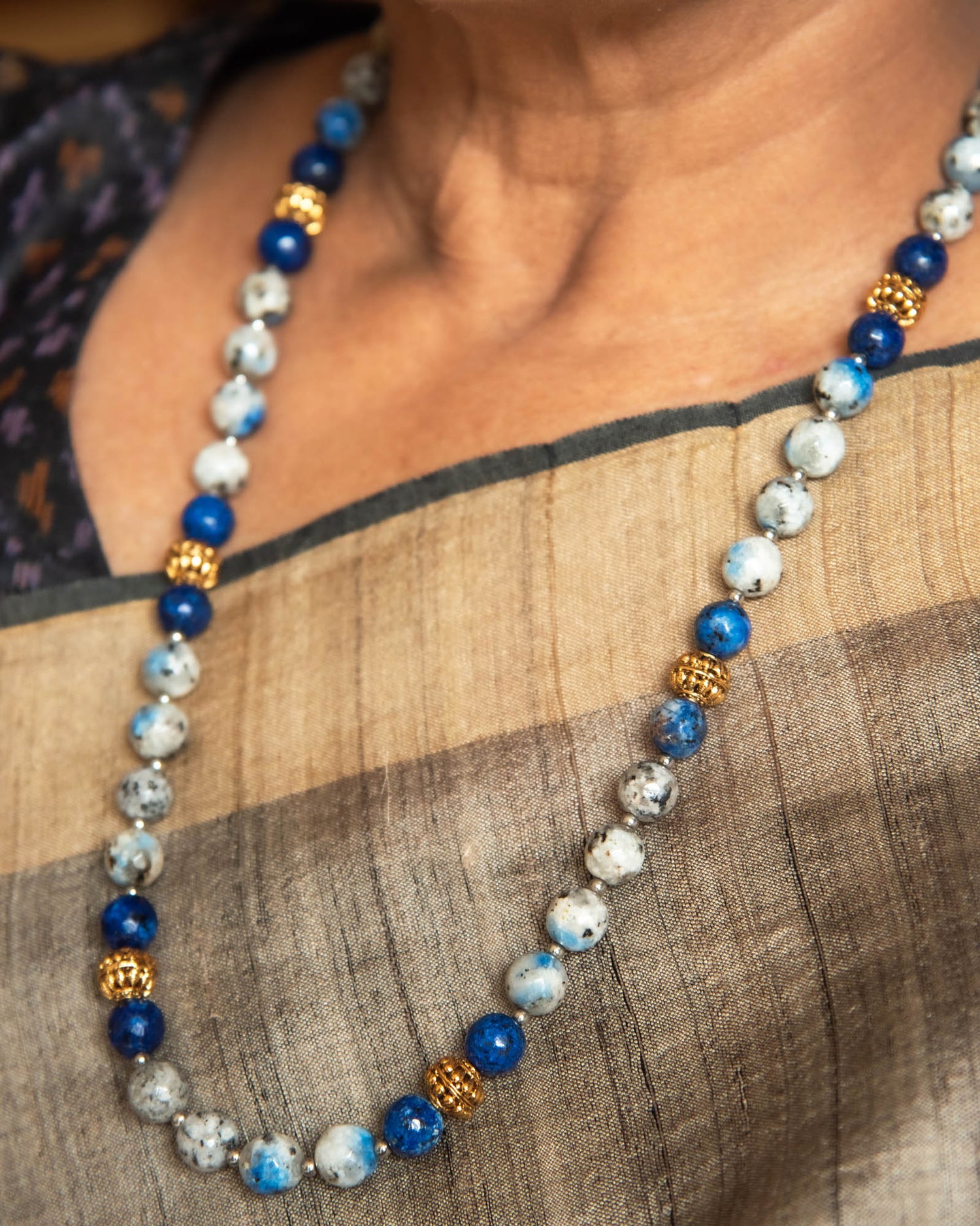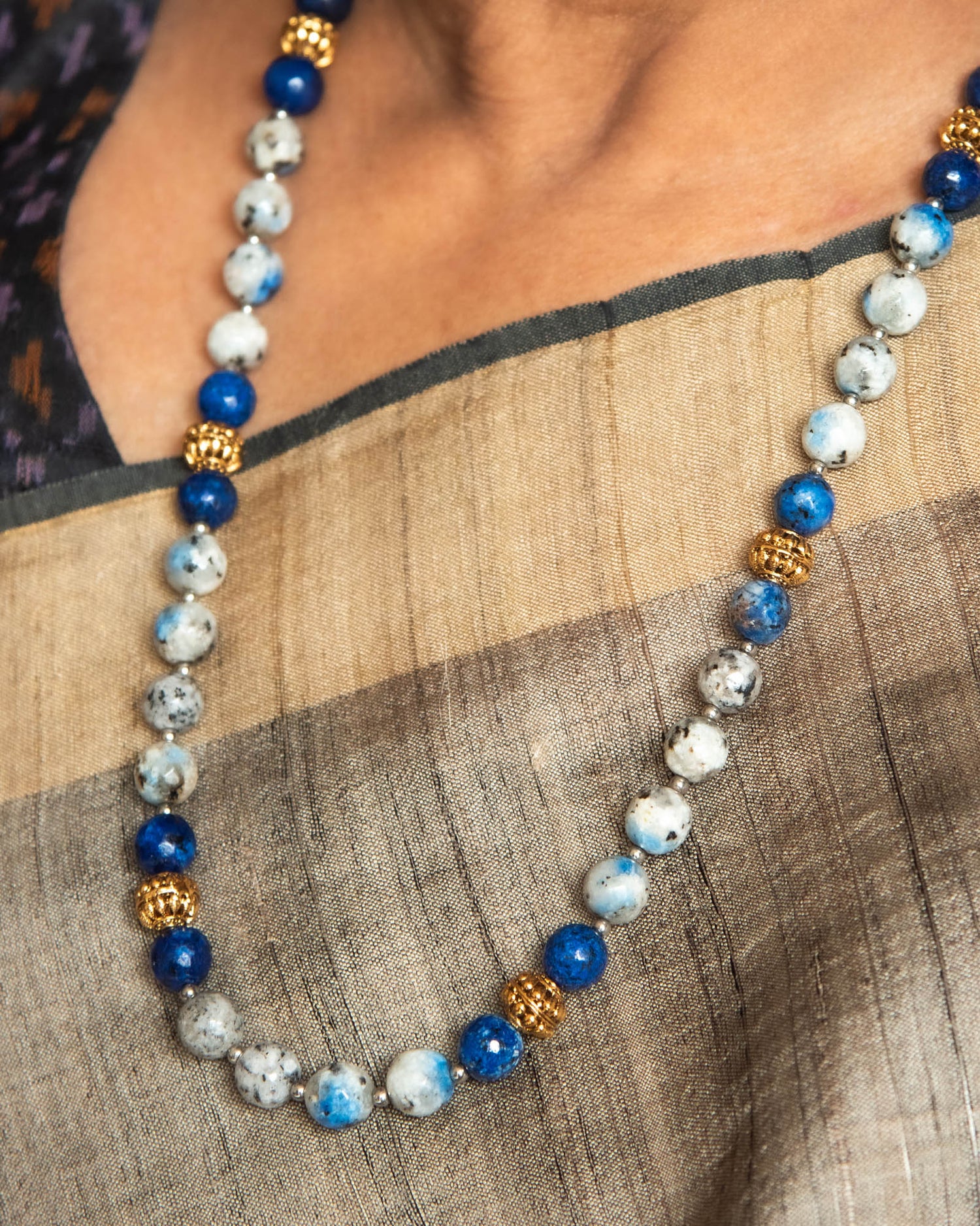 A simple single row Agate chain with antique separators. In stunning shades, this beaded necklace is an absolute wardrobe essential.