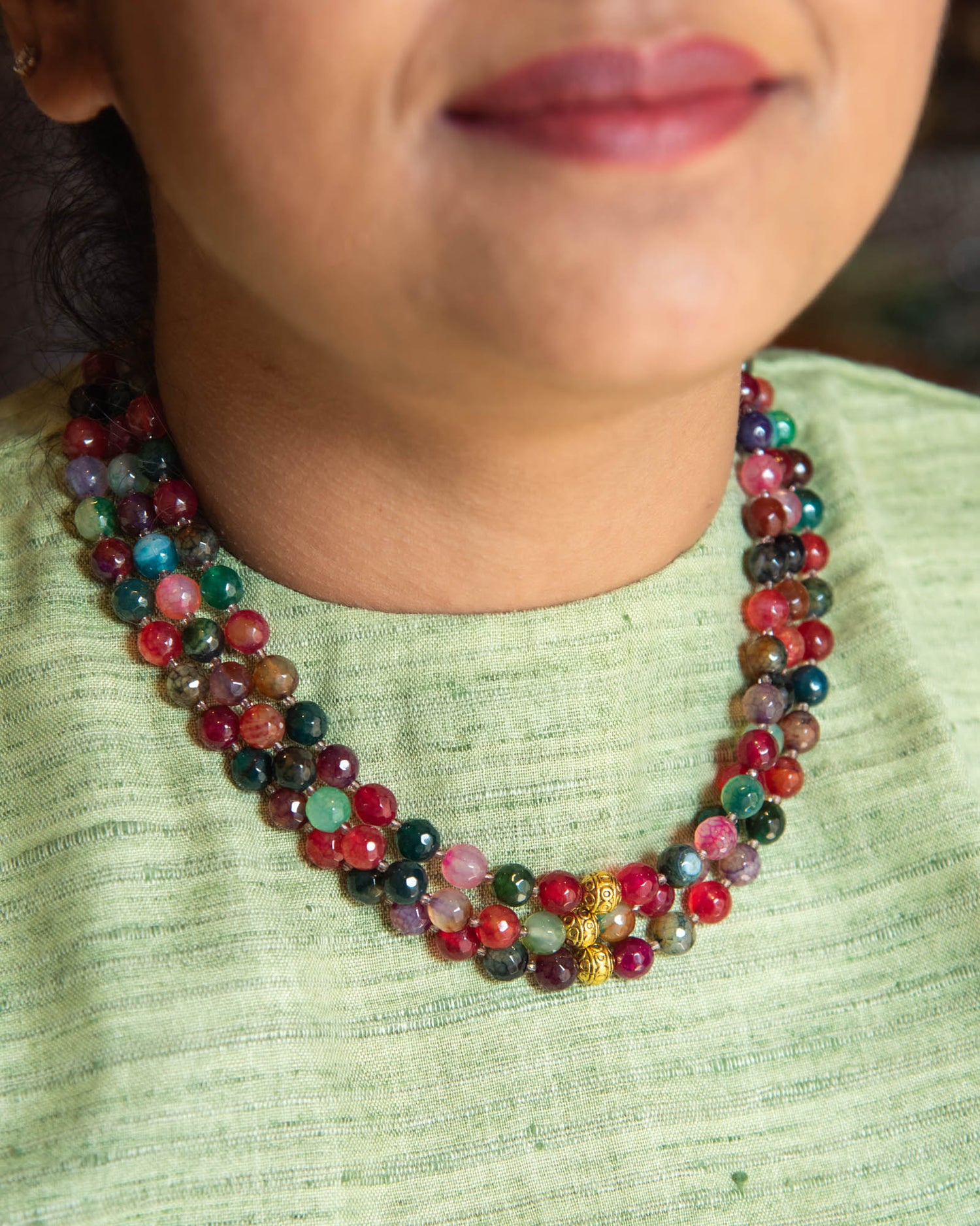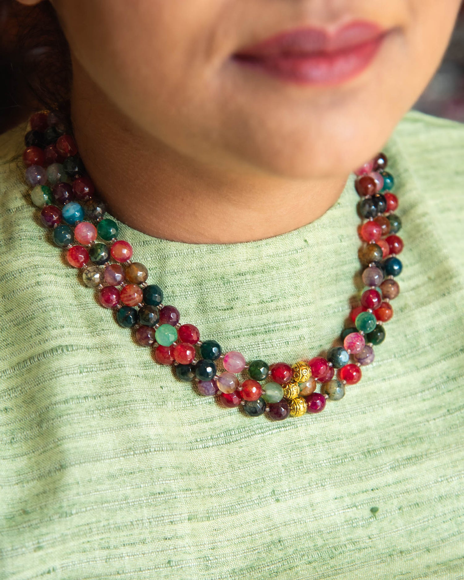 Gleaming Agates in a flirtatious collar design; Umang's Trini collection is multifaceted. This collection is designed with a touch of lightness to carry you from day to night.